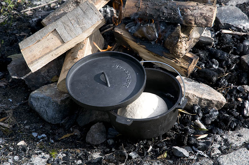 Im Gusseisentopf mit reichlich Oberhitze backt das Brot etwa 30 Minuten. Aus dem Topf riecht und dampft es schon vielversprechend, die Spannung steigt …